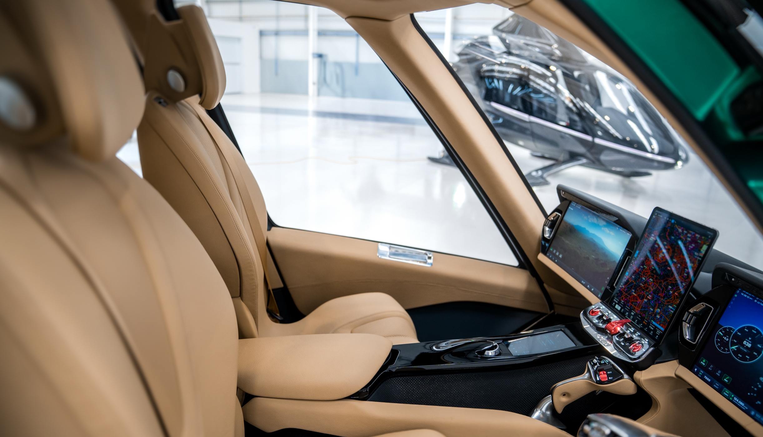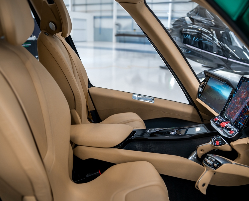 The HX50's groundbreaking cabin delivers a complete rethink of helicopter flight for the pilot and those who prefer to be flown. Combining redesigned flight controls, full glass instrument panel, panoramic windows and skylights, exclusive leather seating, and a host of luxury features, the HX50's stylish interior will stir up your senses.